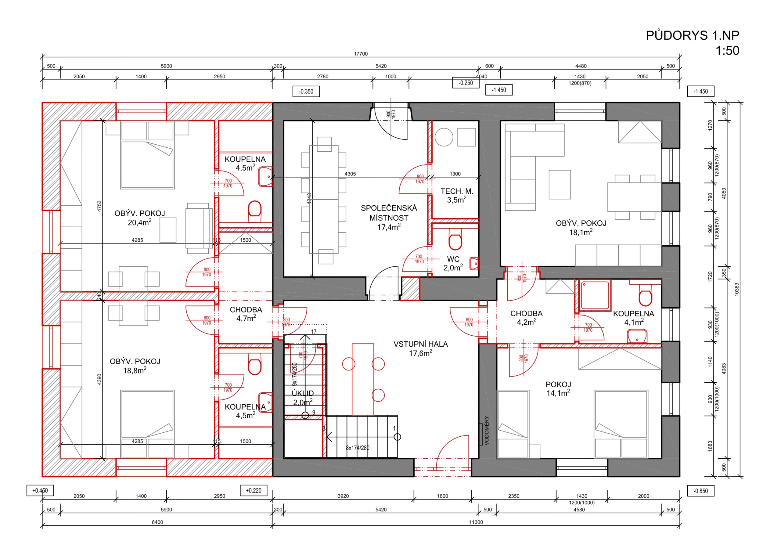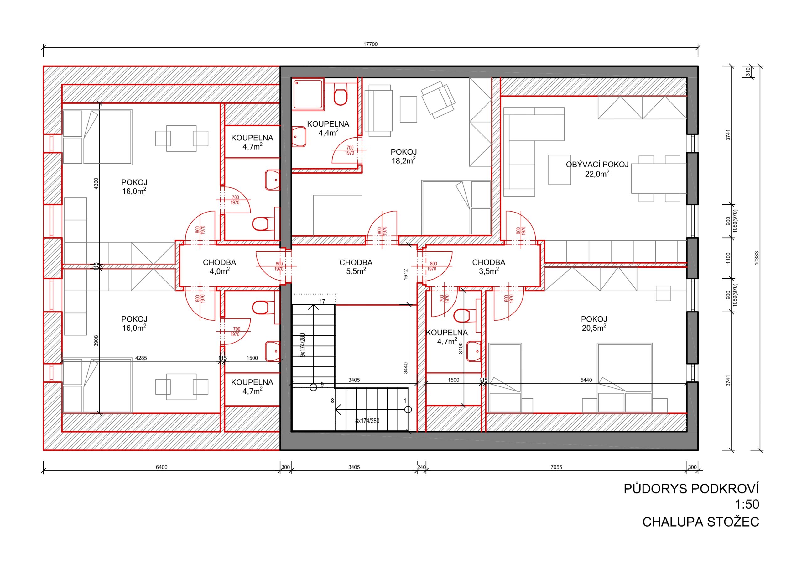 – Jde o apartmánový dům složený ze 7x apartmánů ve dvou podlaží + 1x společenská místnost v přízemí